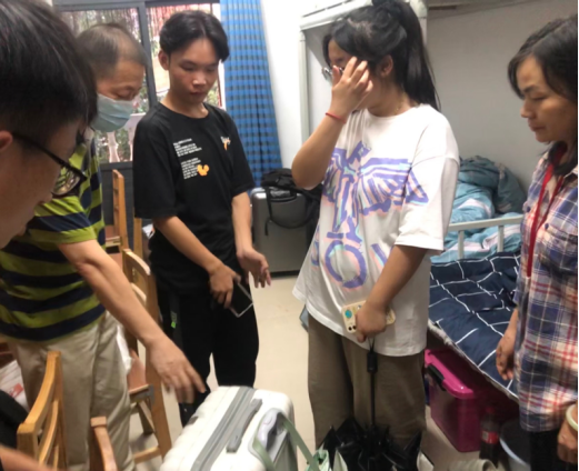 一通来自派出所的电话让所有人悬着心,21工商管理2班李冰玉焦急地向学校保卫处报警陈述自己的行李箱不慎丢失,通过志愿者在学校发布消息仍未找到,自己非常着急。接到保卫处电话后,十大体育网站 | 全球最佳体育资讯平台推荐与评测的刘波副书记第一时间赶到现场,与派出所干警、保卫处干部一起询问员工情况,安抚员工的情绪,并立即动员经管院员工干部和志愿者查找当班接待志愿者,同时到保卫处查看视频监控追踪行李箱去向。在志愿者负责人吴雨欣、谭澳东等同学们历经4个小时的不懈努力查找,行李箱终于在8栋被大家找到。在保卫处、宿委会、经管院员工志愿者的共同见证下,刘书记将行李箱交到李冰玉的手中,并嘱咐她及时告知家长、今后注意个人物品的保管等,李冰玉同学说:“十分感谢学院老师、同学们的帮助,让我能顺利找到行李箱,让第一次出远门的我感到了家的温暖。”