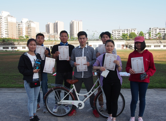 比赛过程中,各位选手按照赛前做好的分组进行比赛,在春风吹拂、阳光照耀下,大家都对比赛充满着信心。各位参赛选手大多为骑行爱好者,也有骑行高手,在第一轮障碍赛里,都拿出自己的“看家小本领”轻松通过重重障碍。第二轮的快速骑行中,各位选手也不相上下,不甘示弱,为大家带来了一场激烈的追逐对决:有的选手由于心急,而遗憾的失去了进入最终对决的机会;有的选手沉着冷静,抓住时机一举拿下比赛。到了最后一轮比赛——慢骑赛,对骑行技巧和心理素质有很高的要求,选手们也都纷纷展示自己的技巧,灵活应对。经过近3个小时的激烈角逐,比赛圆满结束,最后有七位选手脱颖而出获得了奖励。