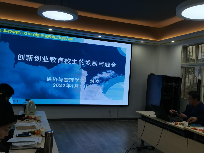 (通讯员:王朗)2022年1月10日下午,在湖科老员工创业孵化基地路演厅,创业学院举办了创新创业工坊第六期活动,也是本学期最后一次活动。创业学院经理钟儒刚、专职副经理梅贤臣、《创业基础》课程核心教师团队全体成员参加。