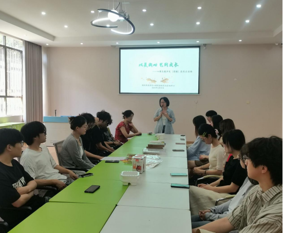 刘梦娣同学带领大家学习了团扇知识,并带着大家了解了各种各样的艺术形式,为大家讲解了团扇的起源、发展以及现代扇的分类,并给大家发了芭蕉扇、团扇等各种各样的扇供大家参观和选择,整个过程中同学们都积极参与并积极互动。