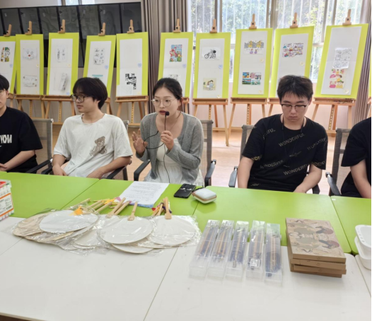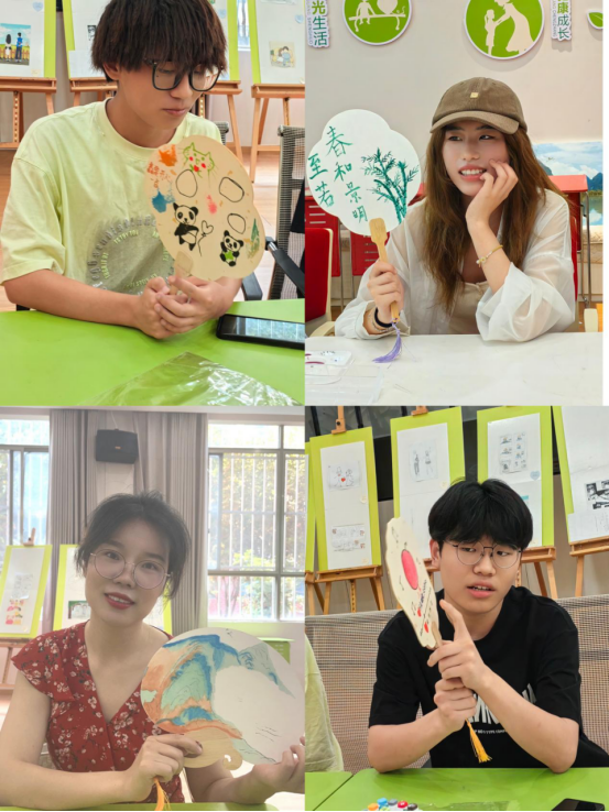 活动进入到同学们进行艺术创造的阶段,老师拿出提前准备好的颜料、彩笔等,让同学们在自己的扇上进行美术创作,同学们认真构思,想好自己想要画的内容后仔细挑选颜料和颜色,在扇上仔细描绘,通过艺术创作表达自己的情感和思想。经过一个多小时的艺术创作后,同学们都陆陆续续的完成了自己的创作。徐庆龄老师采取自愿分享的原则让同学们分享了自己的作品以及创作中的感受,让同学们倾听他人的分享,反思自己的成长和变化。最后通过通过简单的蝴蝶拍游戏和互动,让参与者放松身心,结束活动。