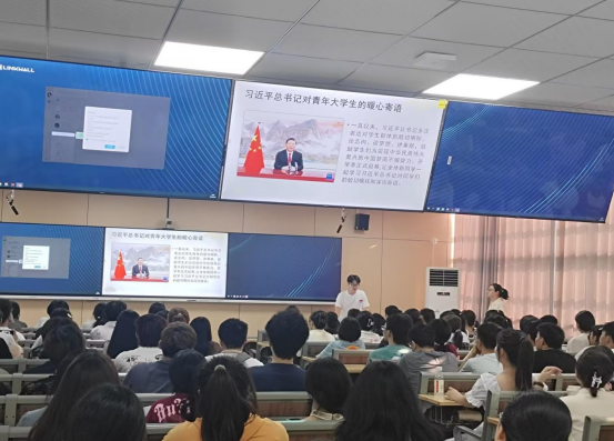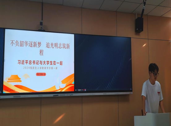 活动开始,通过PPT讲解以及视频学习,徐淦带领新生们共同回顾了习近平总书记关于青年成长成才的重要论述,深刻理解到作为新时代的青年,肩负着实现中华民族伟大复兴的历史使命。视频中,习近平总书记的殷殷嘱托如同春风化雨,滋润着每一位新生的心田,激发了他们不负韶华、勇敢追梦的豪情壮志。