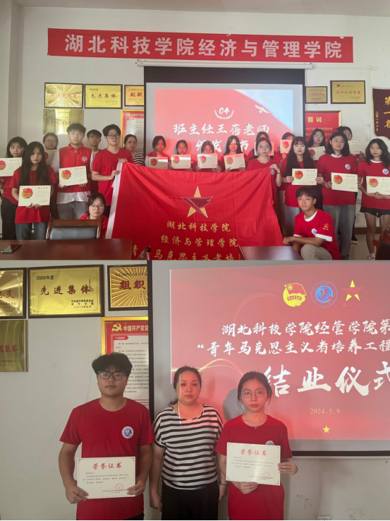 王蓓老师给全体青马班成员颁发了结业证书,并给两位优秀学员颁发了优秀学员荣誉证书。王蓓老师表示:“在青马班学习过程中,看到了每一位学员的努力和成长,你们用实际行动诠释了马克思主义精神,展现了新时代青年的风采,相信在未来的日子里,你们一定能够继续发扬这种精神,为实现中华民族伟大复兴的中国梦贡献自己的力量”。她强调,结业并不意味着学习的结束,而是一个新的开始。马克思主义精神是我们终身学习的宝贵财富,也是我们不断前行的动力源泉。希望各位学员能够继续保持学习的热情和进取的精神,不断拓宽知识视野,提高综合素质,为实现个人价值和社会价值而努力奋斗。