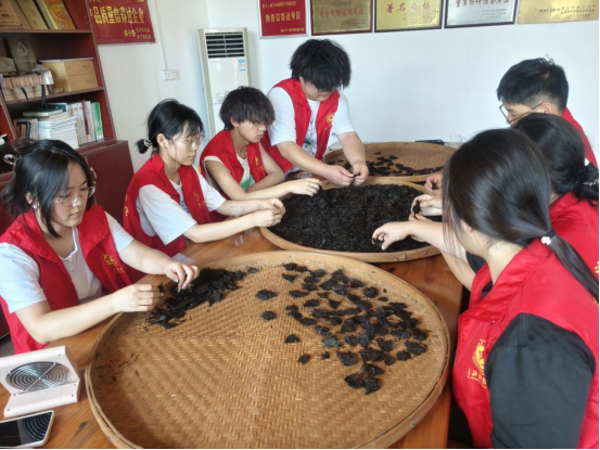 实践的核心环节,是跟随非遗传承人——经验丰富的老师傅进行沉浸式学习。老师傅在斑驳的木梁下,耐心地向学子们讲解选茶、蒸茶、压制等关键步骤的要领。在老师傅手把手的指导下,青年学子们亲身体验了选茶的过程,指尖感受着茶叶的质地与温度。这一刻,青春的热情与百年的匠心在氤氲茶香中交融碰撞。