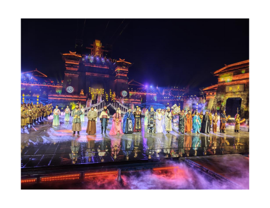 如何更好地以数字科技赋能传统文化,推动传统文化的创造性转化和创新性发展,用现代科技新形式讲好三国故事,挖掘传统文化新的时代内涵,正是新形势下景区做出的新探索。实践团队观看了全球首部沉浸式三国实景剧——“借东风”,通过赤壁脚盆鼓参与“借东风”祭典仪式,真正了解和体验了中华优秀传统文化在现实景点的经典场景体现。