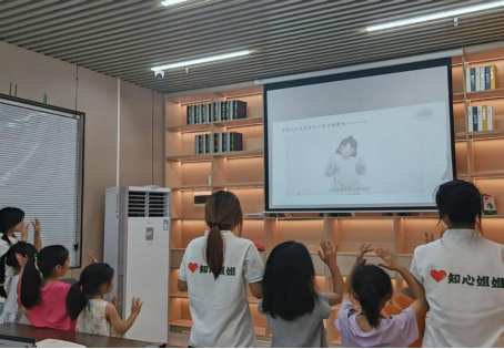 (“知心姐姐”带领小朋友做感恩手势舞)