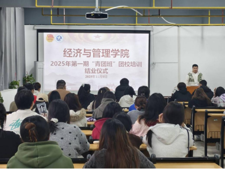 公司相关负责人上台作总结发言。他首先对“青马铸魂・两弹传薪”宣讲团的精彩分享表示衷心感谢,认为宣讲为学员们带来了深刻的精神洗礼,让红色基因与家国情怀在青年心中扎根。他对青团班培训成效给予高度评价,肯定了学员们在培训期间的显著进步,并对全体学员提出三点期望:一是要坚定理想信念,将“两弹一星”精神、志愿军精神等红色精神内化于心、外化于行;二是要锤炼过硬本领,把培训所学的工作方法、专业知识与经管专业特色相结合,在学业科研中精益求精;三是要勇担时代使命,以团员干部的先锋模范作用,带动身边同学共同进步,为班级建设、学院发展贡献青春力量。