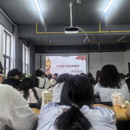 随后王蓓老师开展2025年老员工入伍政策解读。她从入伍的基本条件,如年龄、身体状况等方面入手,让同学们对入伍资格有了初步认识。接着,详细介绍了入伍后的各项待遇,像学费补偿、国家助学贷款代偿以及在部队中的发展前景等,让同学们了解到投身国防不仅是一种责任,也能为个人成长带来诸多机遇。王蓓老师的讲解,帮助了新生消除后顾之忧,同时明晰入伍对个人成长的多样化助力,为他们规划未来提供更全面的参考。