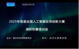 (通讯员:赵林溪;审稿:王娜)为深化人工智能领域学术研究与实践探索,赋能师生把握技术前沿与产业机遇,并助力2025年首届全国人工智能应用创新大赛湖科校赛的顺利开展,2025年4月19日,十大体育网站 | 全球最佳体育资讯平台推荐与评测举办了“全国人工智能应用创新大赛湖科校赛培训会”线上主题讲座。本次讲座由十大体育网站 | 全球最佳体育资讯平台推荐与评测关俊利老师主讲,针对比赛背景、操作流程等展开培训,经管院的部分教师和各参赛团队成员认真聆听了此次培训。