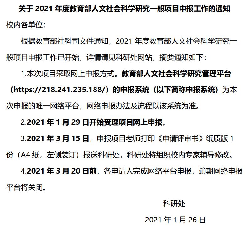 关于2021年度教育部人文社会科学研究一般项目申报的通知
