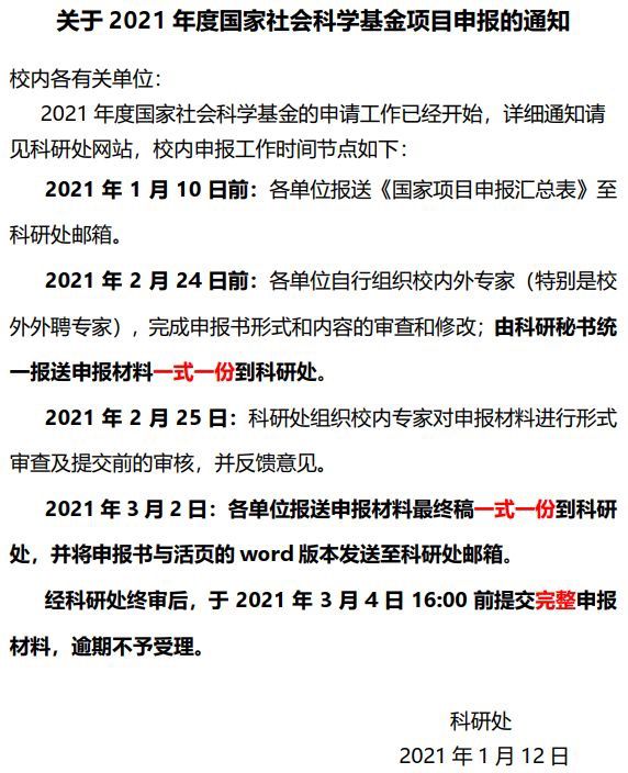 关于2021年度国家社会科学基金项目申报的通知